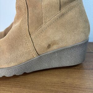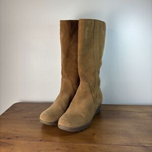 Lands' End Women's 8.5 Suede Knee High Winter Boots Tan Sherpa Lined Wedge