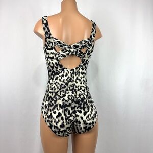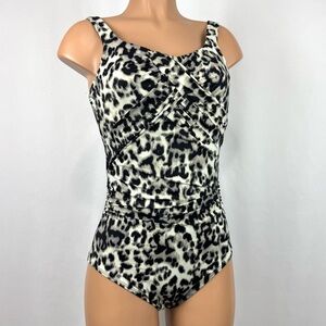 Lands End Women’s 8L Tan Black Cheetah Print One Piece Swimsuit Slimming w/ Bra