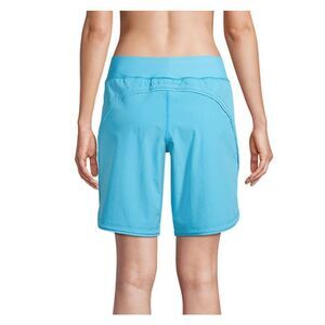 Lands End Women's 9" Board Shorts with Panty Blue Lined size 8 Bermuda Swim Long inseam bathing suit modest coverage aqua teal UPF 50