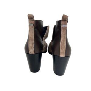 0276B- Lands’ End women’s ankle boots, US 10, 3.25” heel; slip on with pull tabs. Brown suede front, smooth dark brown leather back. Rubber sole, slip resistant. Almond toe, lightly cushioned. Very good condition, gently worn, there is a vertical scratch on left heel on inner side, see photo.