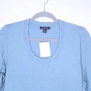 Lands End Womens Baby Blue Twisted Scoop Neck Pullover Sweater Size Large Petite