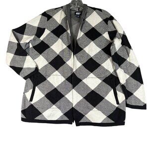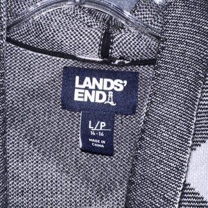 Lands End Women's Black Buffalo Check Open Front Long Sleeve Sweater Cardigan Pockets Large Petite LP 14/16. 100% Cotton.