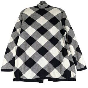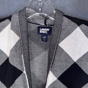 Lands End Womens Black Buffalo Check Open Front Sweater Cardigan Large Petite LP