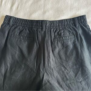 Lands End Womens Black High Rise Wide Leg Linen Pants Sz 14 Minimalist Office