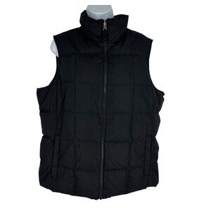 Lands End Womens Black Puffer Vest Insulated Full Zip Lightweight Size XL