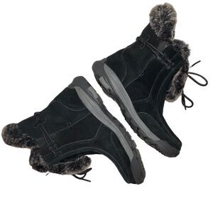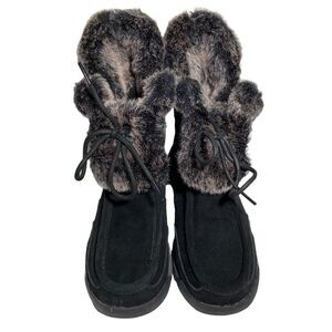 Lands End Women's Black Suede Winter Boots Size 7 B Faux Fur Trim Cold Weather