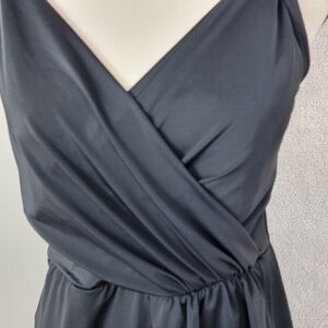 Lands' End Women's Black V-Neck Tulip Wrap One Piece Swim Dress Sz M (10-12)
