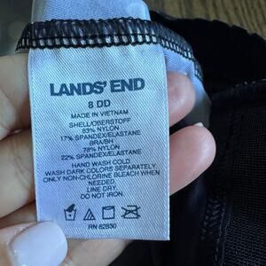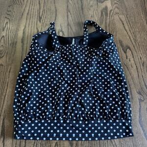 Lands End Womens Black White Polka Dot Banded Tankini Swim Suit Top Size 8 DD