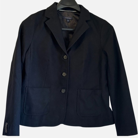 Lands End Women's Black Wool Blend Blazer Jacket Sz 14 Classic Capsule Wardrobe