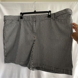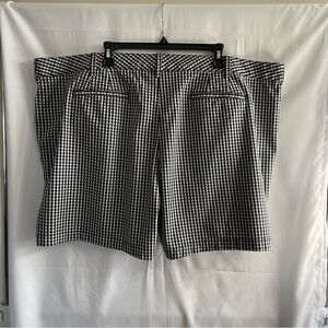 These Lands' End shorts feature a timeless black and white checkered pattern, crafted in a flat front style for a sleek look. Made from a structured fabric, they offer a comfortable fit ideal for casual outings. EUC. Size 26W.