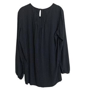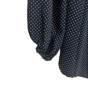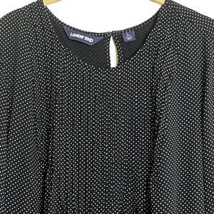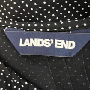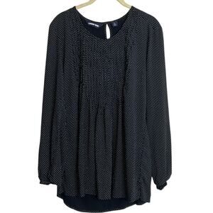 Lands' End Women's Blouse Large Navy White Polka Dot Pintucked Front Long Sleeve