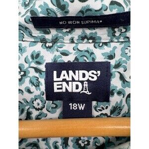 Land's End Women's Blouse Plus Size 18W No Iron Blue Floral 3/4 Sleeve