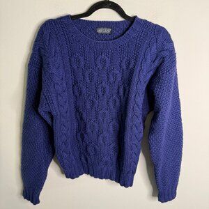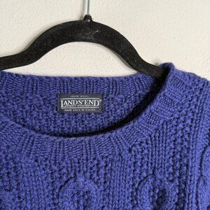 Lands' End Women's Blue 100% Wool Cable Knit Long Sleeve Sweater - Size