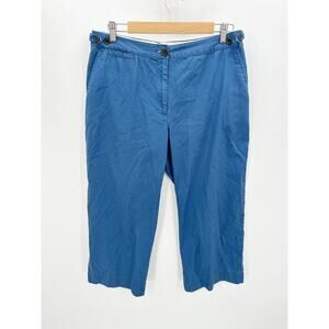 Lands' End Womens Blue Cotton Cropped Chino Wide Leg Pants Size 12 High Waisted