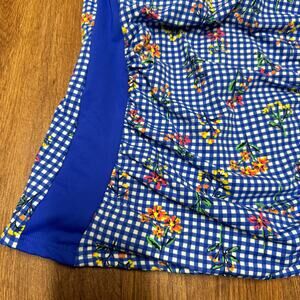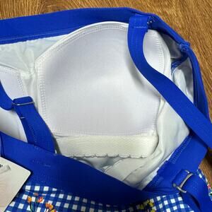 Lands End Womens Blue Floral Gingham Strapless Tankini Swim Top Size 2 NEW