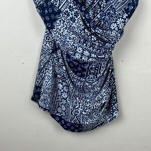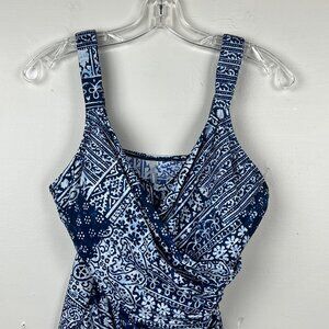 Lands' End Women's Blue One Piece Surplice Skirted Front Bathing Suit Size 12DD