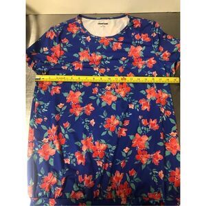 Lands End Women’s Blue and Red Floral Stretchy Short Sleeve Blouse Size S Preowned in excellent condition