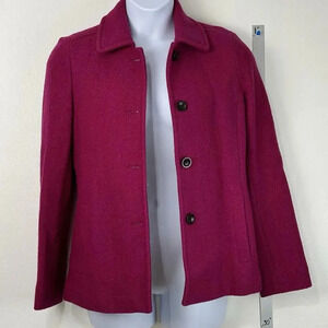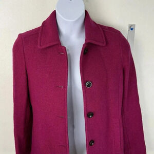 Lands' End Women's Boiled Wool Coat Size 8 Plum Purple Peacoat Button Down