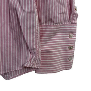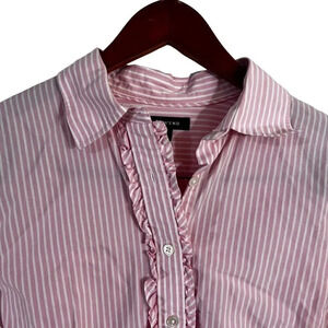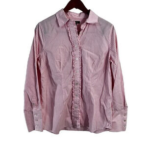 Lands End Womens Button Up Size 12 Pink and White Front Chest Ruffles Business