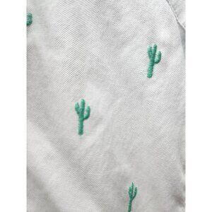 Lands End Womens Button-Down Shirt 2X White With Green Cactus Embroidery Cotton