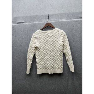 Lands End Womens Cable Knit Sweater M 10-12 Ivory 100% Cotton Made In China