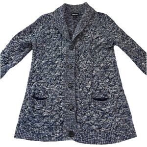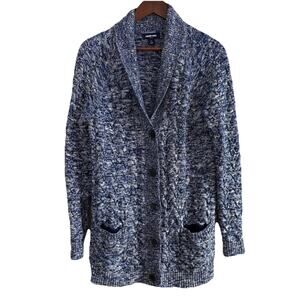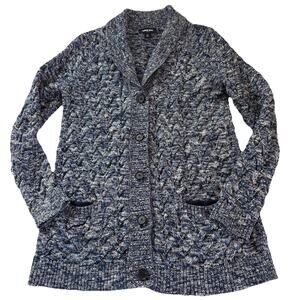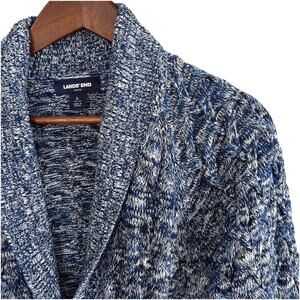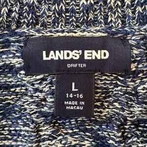 Lands’ End Women’s Cardigan Drifter Cable Knit Sweater Tunic Blue Size Large