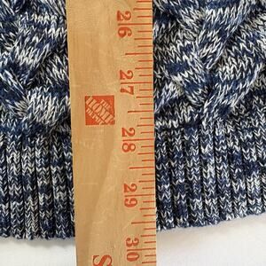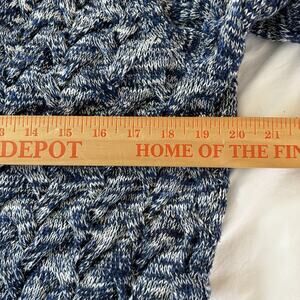 This Lands’ End Women’s Cable Knit Cardigan in a Blue is a stylish and versatile piece for colder weather. Made from 100% cotton, this sweater features a classic cable knit pattern with a shawl neckline and long sleeves. With a size large and a regular fit, it is suitable for casual, business, and travel occasions. The sleeves are narrow. The chest measures 40 inches, the shoulder to hem length is 29.5 inches, and the sleeve length is 25.6 inches. The heavyweight fabric and button accents add a touch of comfort and sophistication to this timeless sweater, making it a must-have addition to any wardrobe.