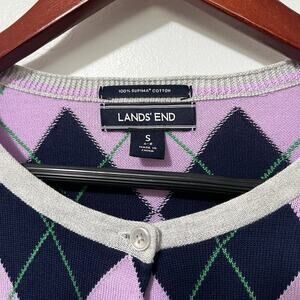 Lands End Womens Classic Gray Heather Argyle Sweater Size S Supima Cotton NWOT