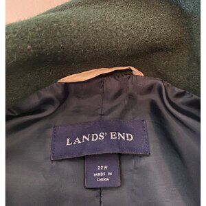 This Lands' End coat exemplifies timeless elegance and practicality. Crafted from high-quality wool, it offers warmth and durability. The dark green hue provides a sophisticated touch, making it suitable for various settings. The coat features a comfortable fit, ensuring ease of movement. Its professional design is complemented by a button-front closure and two pockets.