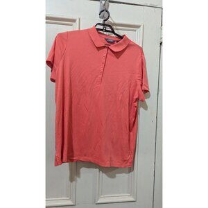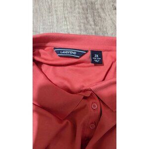 Lands End Womens Coral Polo Shirt 2X Plus Size Short Sleeve Button Front Cotton