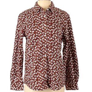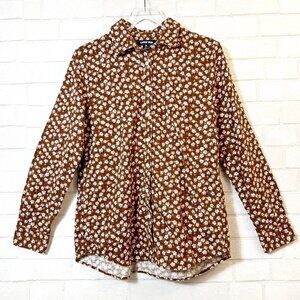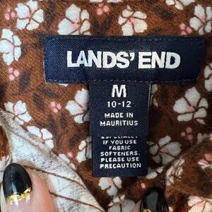 Land's End Women's Cotton Brown Shirt Ditsy White & Pink Flowers Size M (10-12)