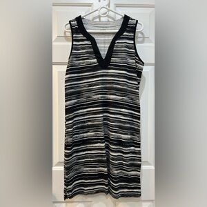 Lands' End Women's Cotton Jersey Dress Sleeveless With Pockets Black White Sz M