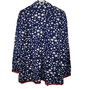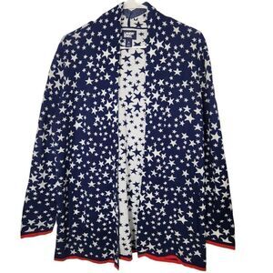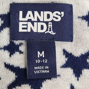 Lands' End Women's Cotton Open Long Cardigan Sweater blue stars medium