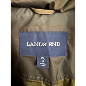 Lands’ End Women’s Down Puffer Coat Olive Green XL 18 Faux Fur Hood Parka Warm