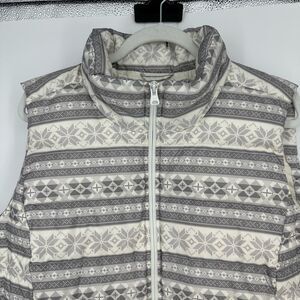Lands End Womens Down Vest Size 2X Nordic Geometric White Outdoor Hiking Pockets