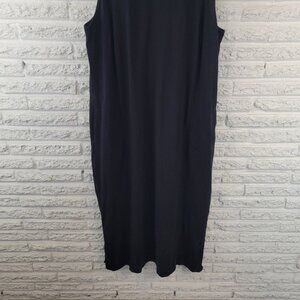 Lands End Womens Dress 1X Plus Sleeveless Shift Black Cotton Side Slits BLA52E