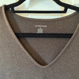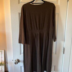 Lands' End, Women's Empire Waist Long Sleeve Midi Dress, Brown, Large