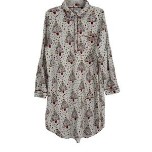 Lands’ End Womens Flannel Night Shirt Gown Size 18 Holiday Christmas Nautical