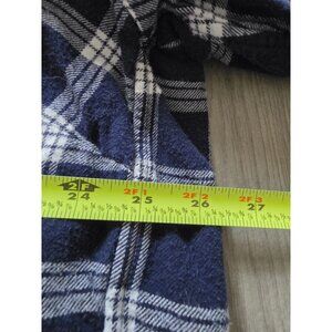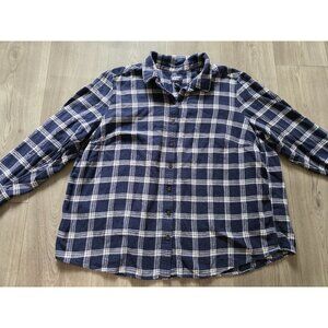Lands End Womens Flannel Shirt 2X Navy & White Plaid Long Sleeve Button-Up Top