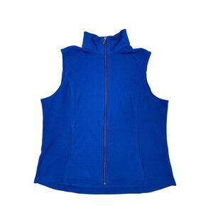 Lands' End Womens Fleece Vest Large 14-16 Blue Full Zip Sleeveless Jacket
