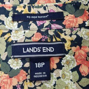 Lands End Womens Floral Button Up Top Size 18 Petite Vacation Island Office