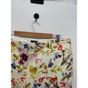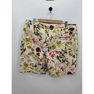 Lands End Womens Floral Cream Bermuda Shorts Size 18 Mid Rise Cotton Modest