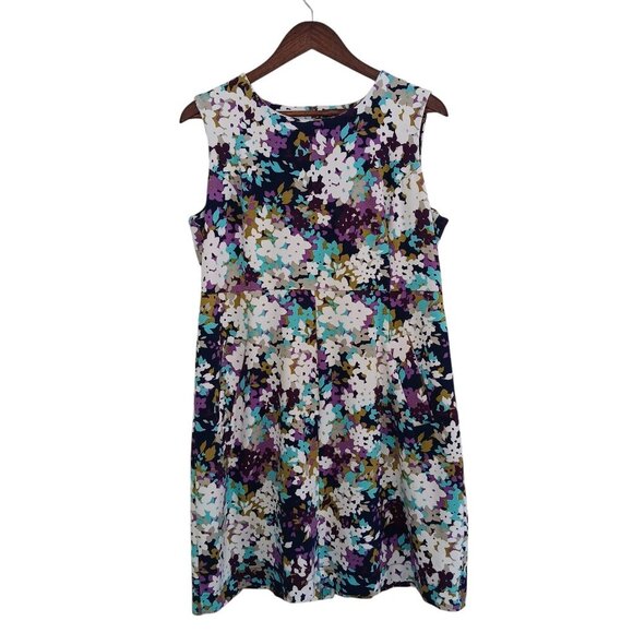 Lands' End Women's Floral Dress Sleeveless Pockets Zip Up Size 14