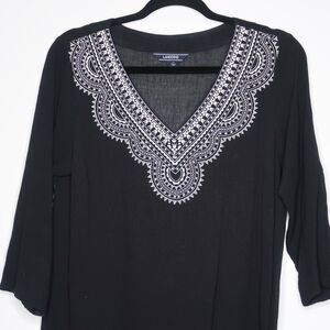 Lands' End Womens Gauze Coverup S/P 6-8 Black White Swim Boho Vacation Resort