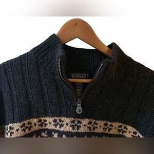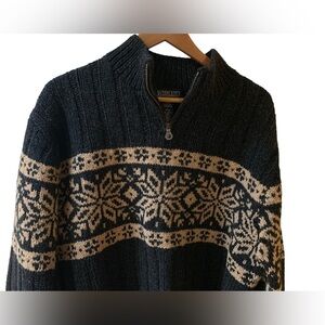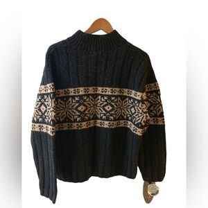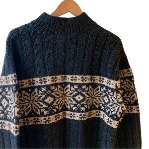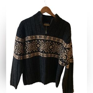 Lands End Womens Gray Snowflake 100% Wool Chunky Quarter Zip Boxy Sweater L