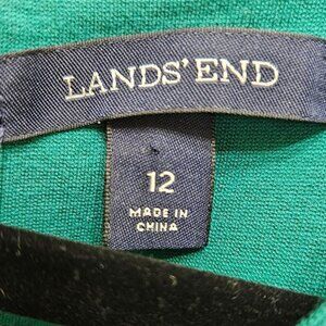 Keywords: Lands' End, Sheath Dress, Sleeveless, Green Dress, Damask Print, Women's Dress, Size 12, Knee Length, Career Dress, Party Dress, Viscose Blend, Nylon Blend, Elastane Blend