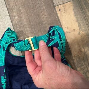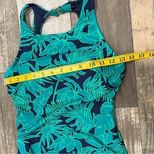 Lands' End Women's High Neck Emerald Navy Floral UPF Keyhole Swimsuit Size XS