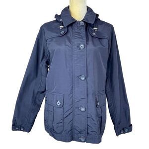Lands’ End Women’s Hooded Jacket Small S 6-8 Navy Nylon Rain Windbreaker Coat