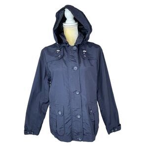 Lands End Women Sz Small Whirlwind Hooded Jacket Navy Zip Button Storm.