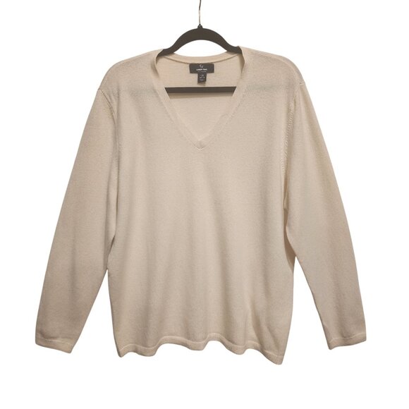 Lands' End Women’s Ivory 100% Cashmere V-Neck Sweater Plus Size 1X 16W-18W.